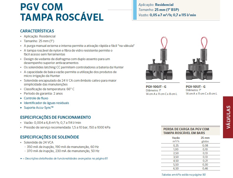 A capacidade de baixa vazão permite a utilização dos produtos de micro irrigação da Hunter;