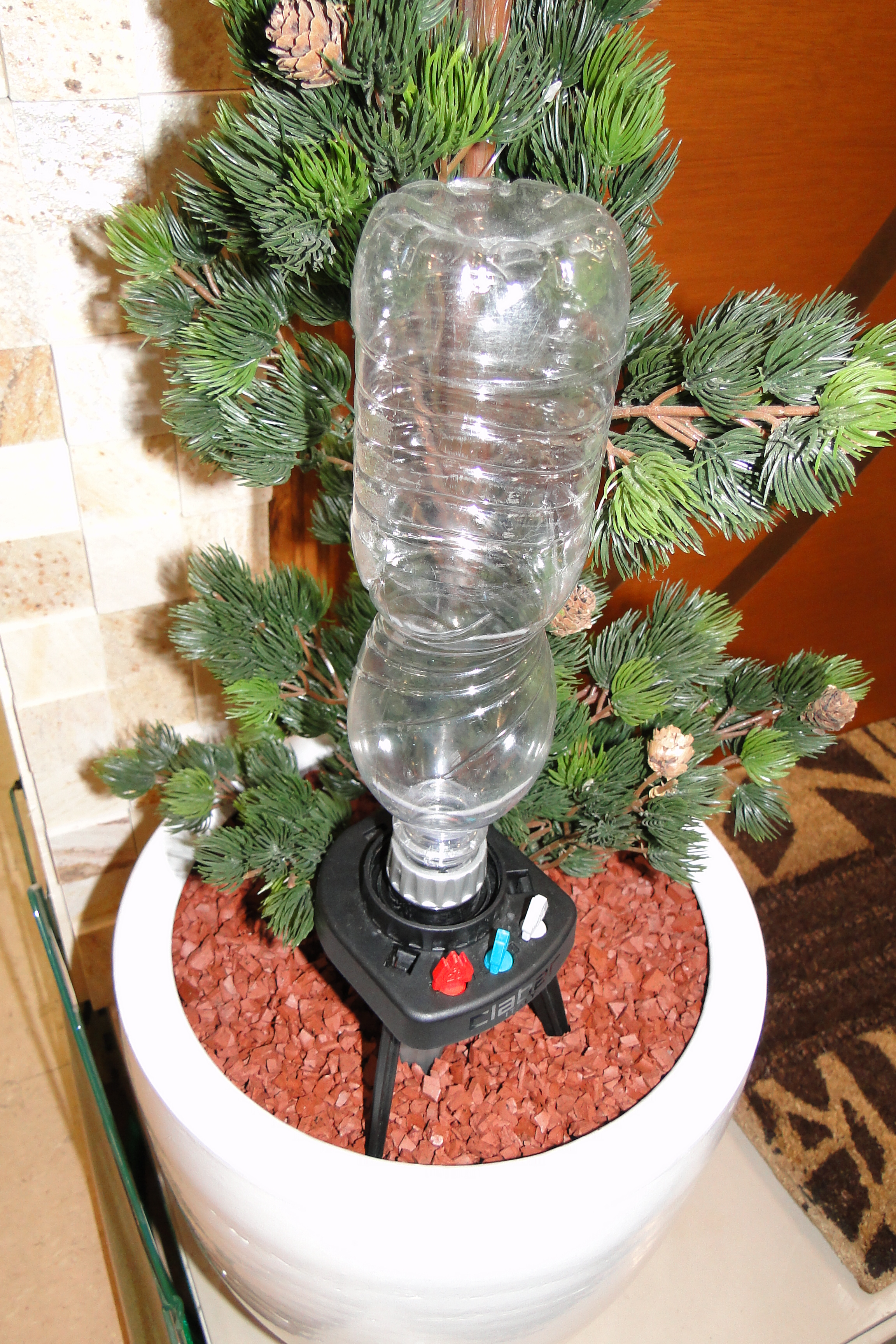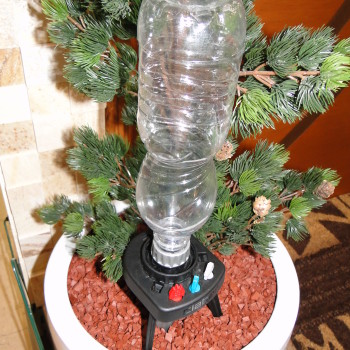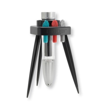 Utilizado para regar um vaso gota a gota. Pode ser montado com qualquer tipo de garrafa PET, ou utilizar o reservatório Idris 8056. Possui quatro dosadores diferentes para ajustar a vazão e a duração da irrigação. Com uma garrafa de 2 litros pode chegar a 20 dias de autonomia.